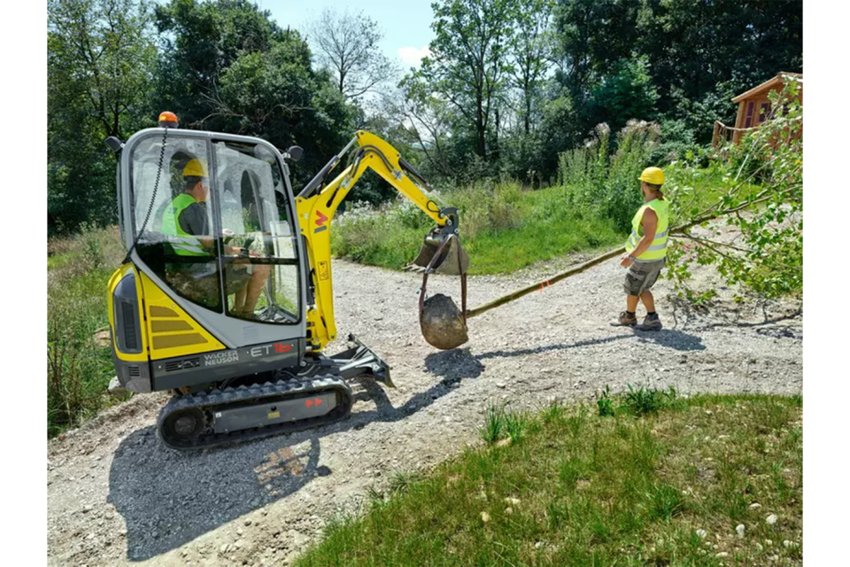 - Ausheben von Gräben für Bewässerung, Kabel und Fundamente.