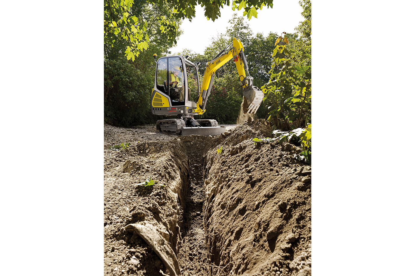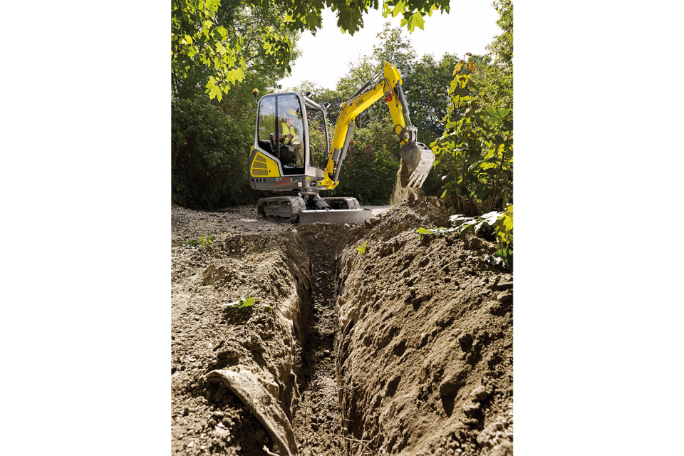 Der Wacker Neuson ET24 überzeugt in der 2,5 Tonnen-Klasse durch das optionale Vertical Digging System (VDS), welches Steigungen von bis zu 15 Grad ausgleicht und so für effizientes vertikales Graben und erhöhte Standsicherheit sorgt.