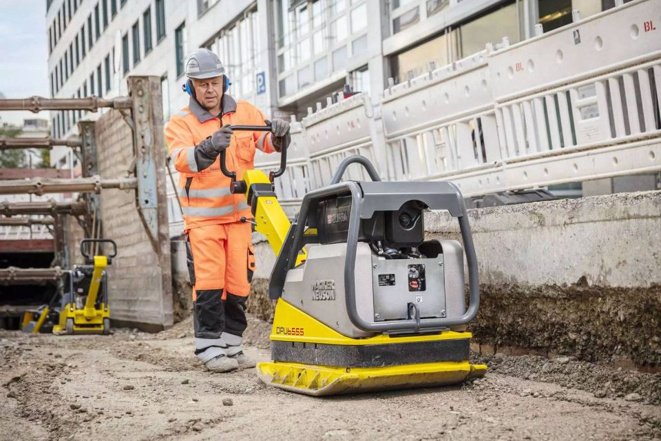 - Verdichtungsleistung: Mit $65 kN Fliehkraft erreicht sie eine überlegene Verdichtungstiefe und -qualität, ideal für Frostschutz- und Tragschichten. Die Arbeitsfrequenz von 69 Hz ist zudem universell und verdichtet auch schweres Verbundsteinpflaster zuverlässig.