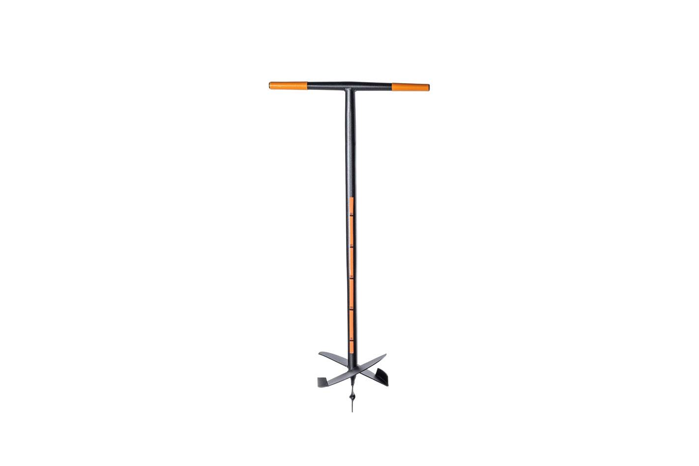 - Stiel/Rohr: Ein langes, stabiles Hauptrohr aus Metall verbindet den Bohrkörper mit dem Griff. Die typische Gesamtlänge von ca. 100 bis 115 cm ermöglicht eine Bohrlochtiefe von ca. 80 bis 90 cm im Standardeinsatz.