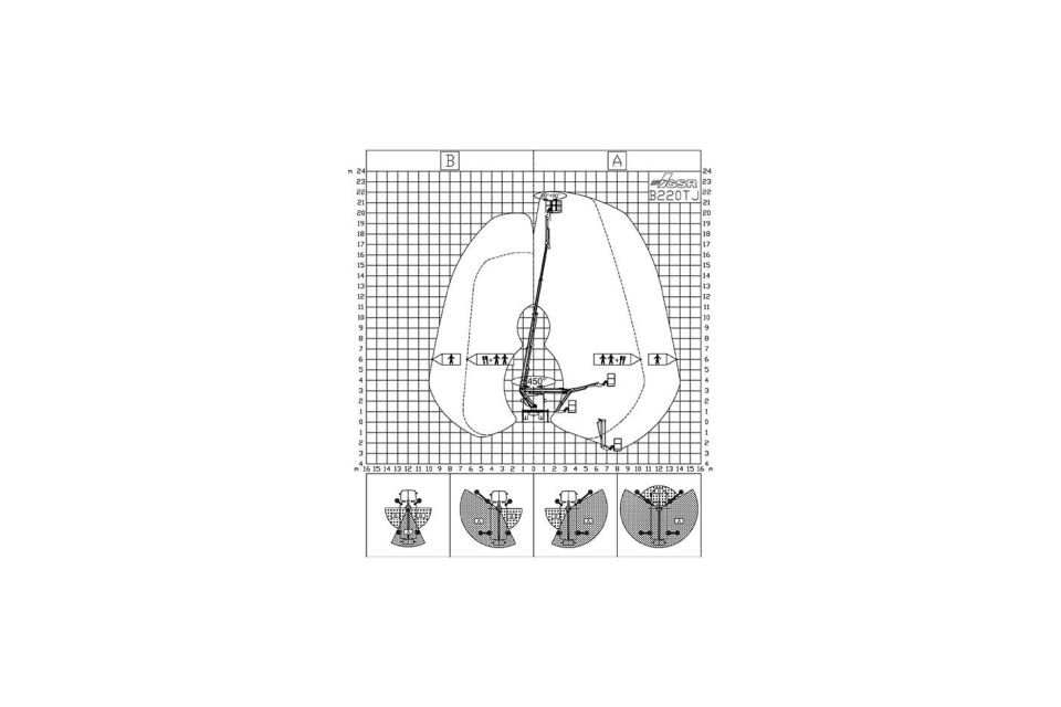 - Hohe Reichweite und Höhe: Nutzen Sie eine beeindruckende Arbeitshöhe von 21,80 m bis 22,00 m und eine seitliche Reichweite von bis zu 14,00 m.